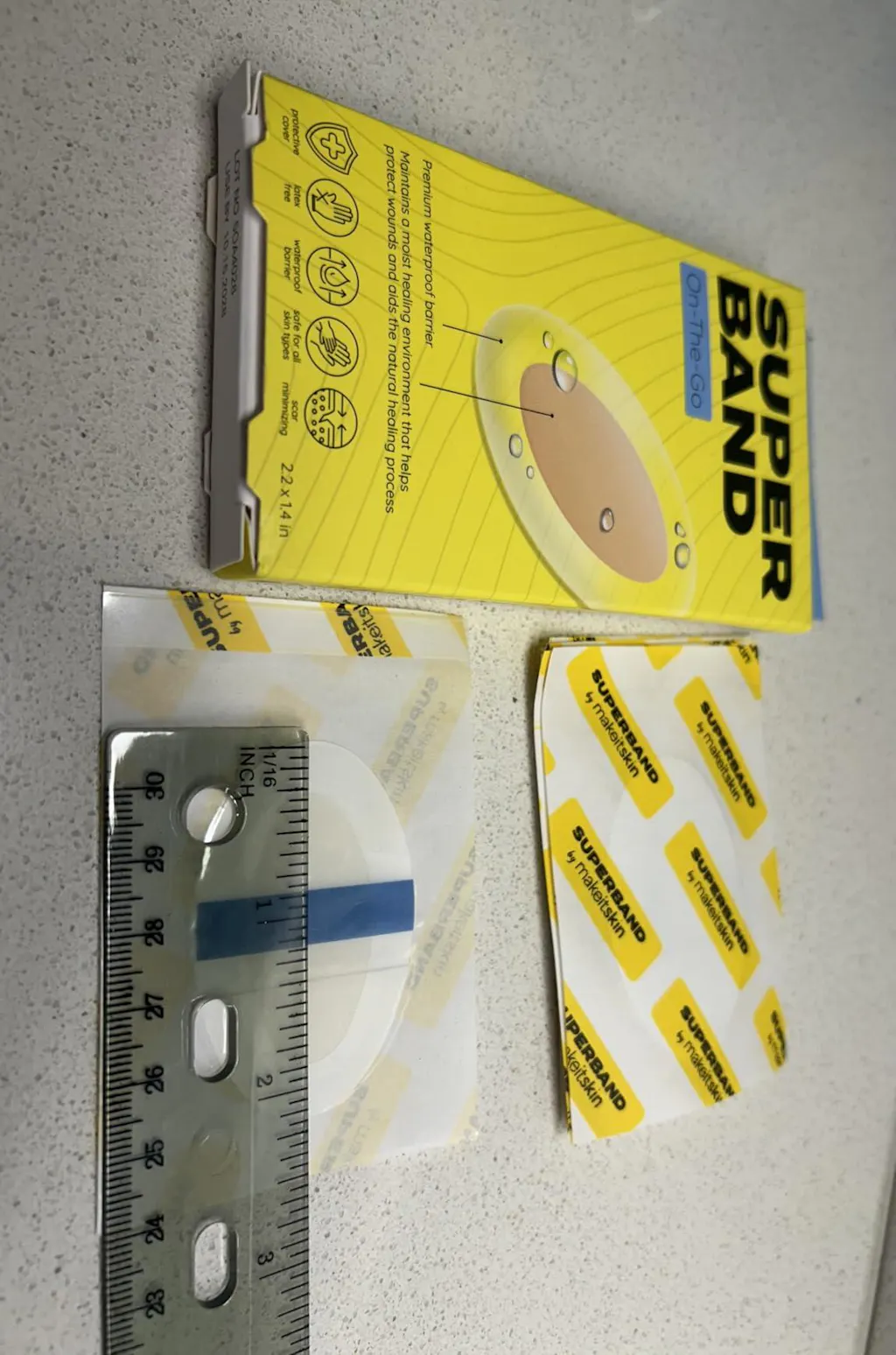 PRO-TIP: Leave it on! Unlike traditional bandages, SUPERBAND is designed to stay on for multiple days. Only replace it once the bandage turns white and the bubble reaches the edges.